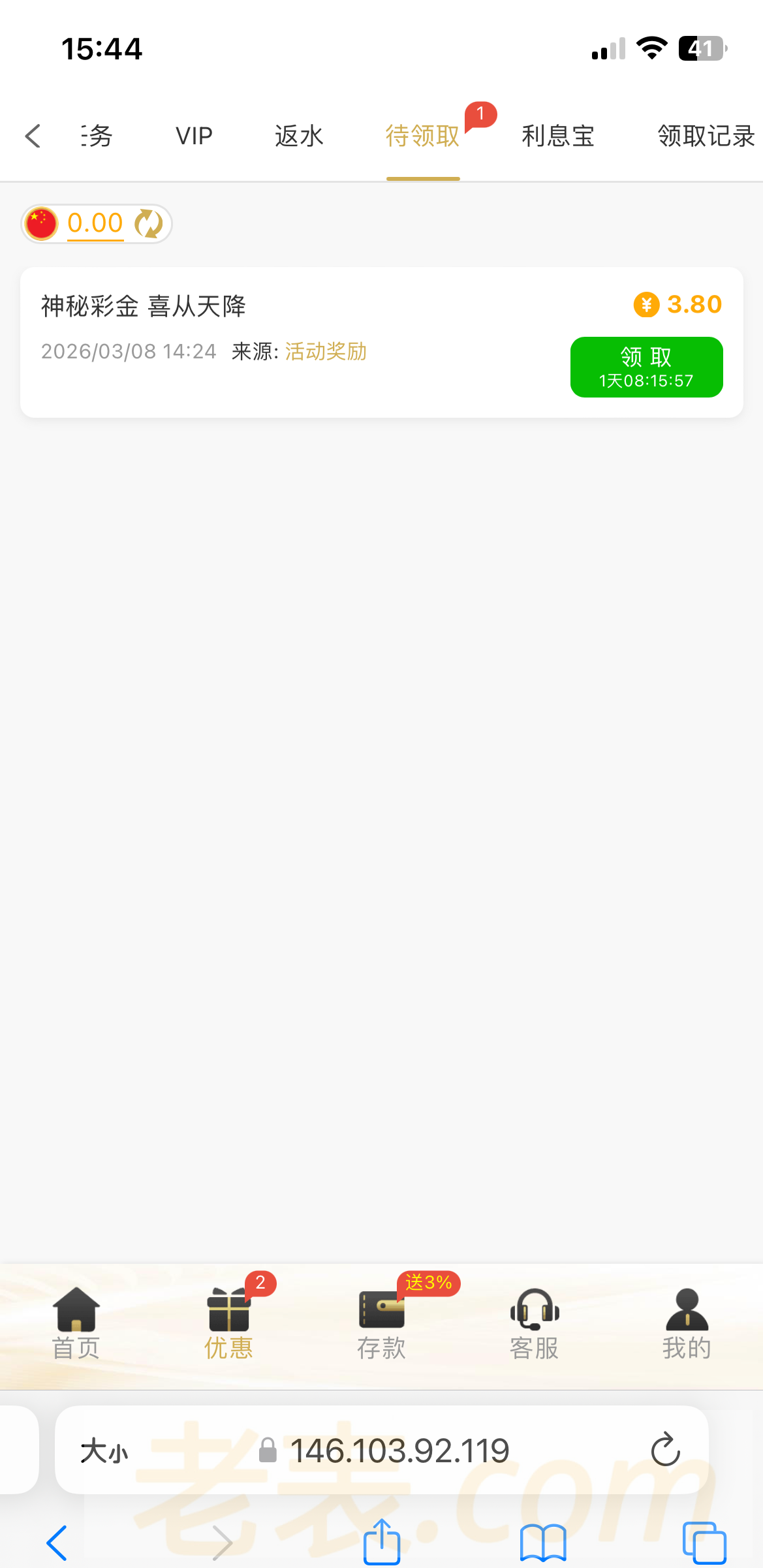 机器人来电话的交登录领取三八妇女节的¥3.8彩金,有号的老哥上线看看有没有,提现自测