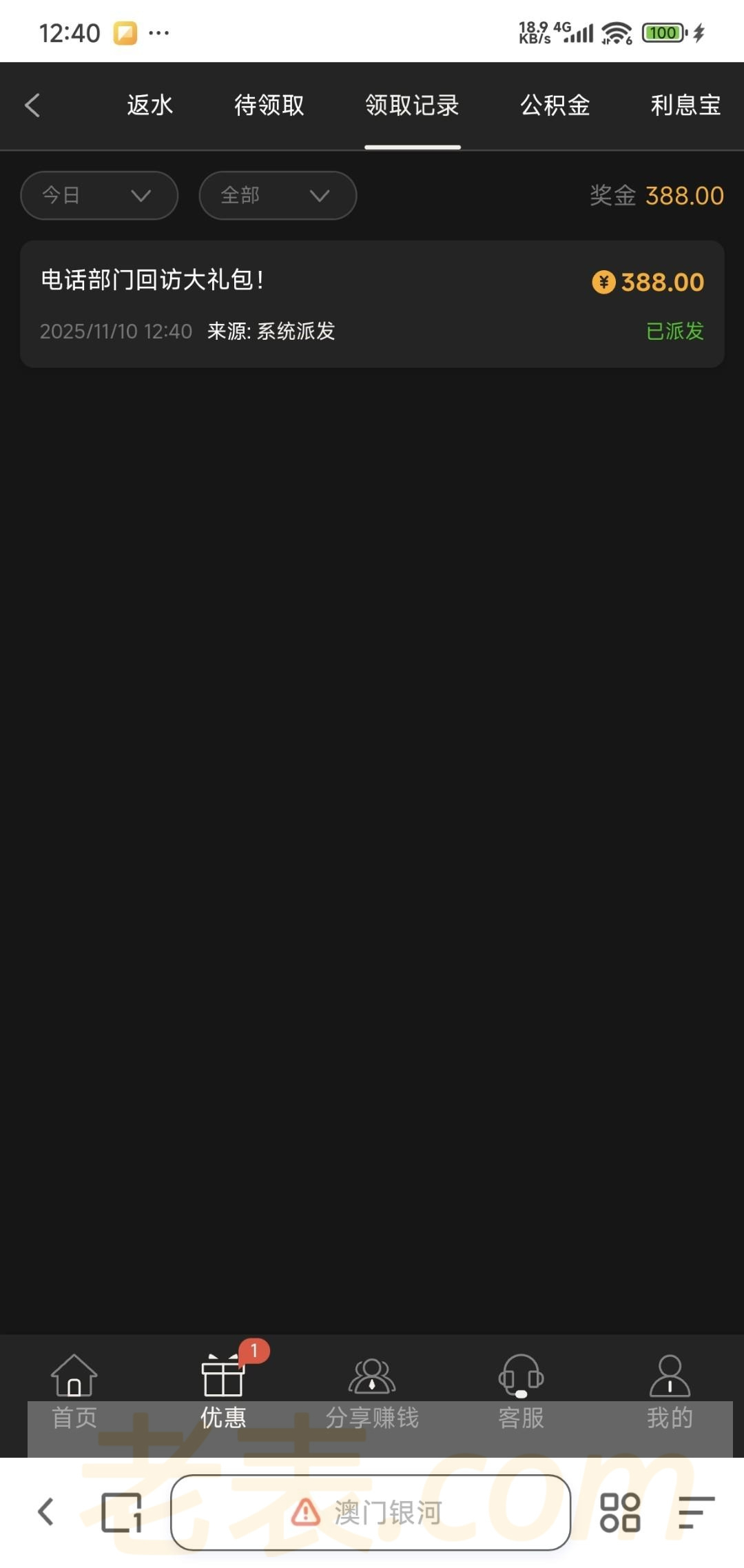 接到电话上号直接送的 有号可以去看看 也可以找客服碰瓷,已出款