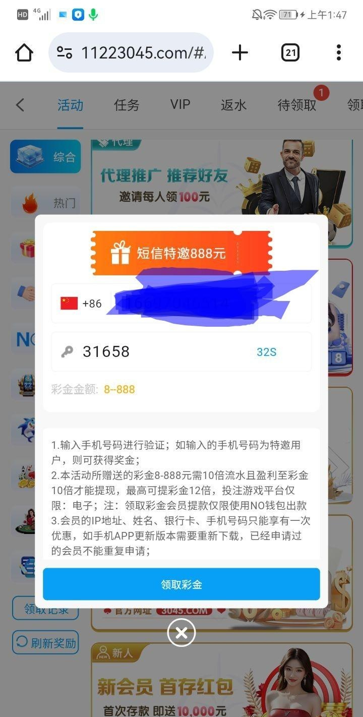 注册好之后优惠手机号验证领取网站 11223045.com