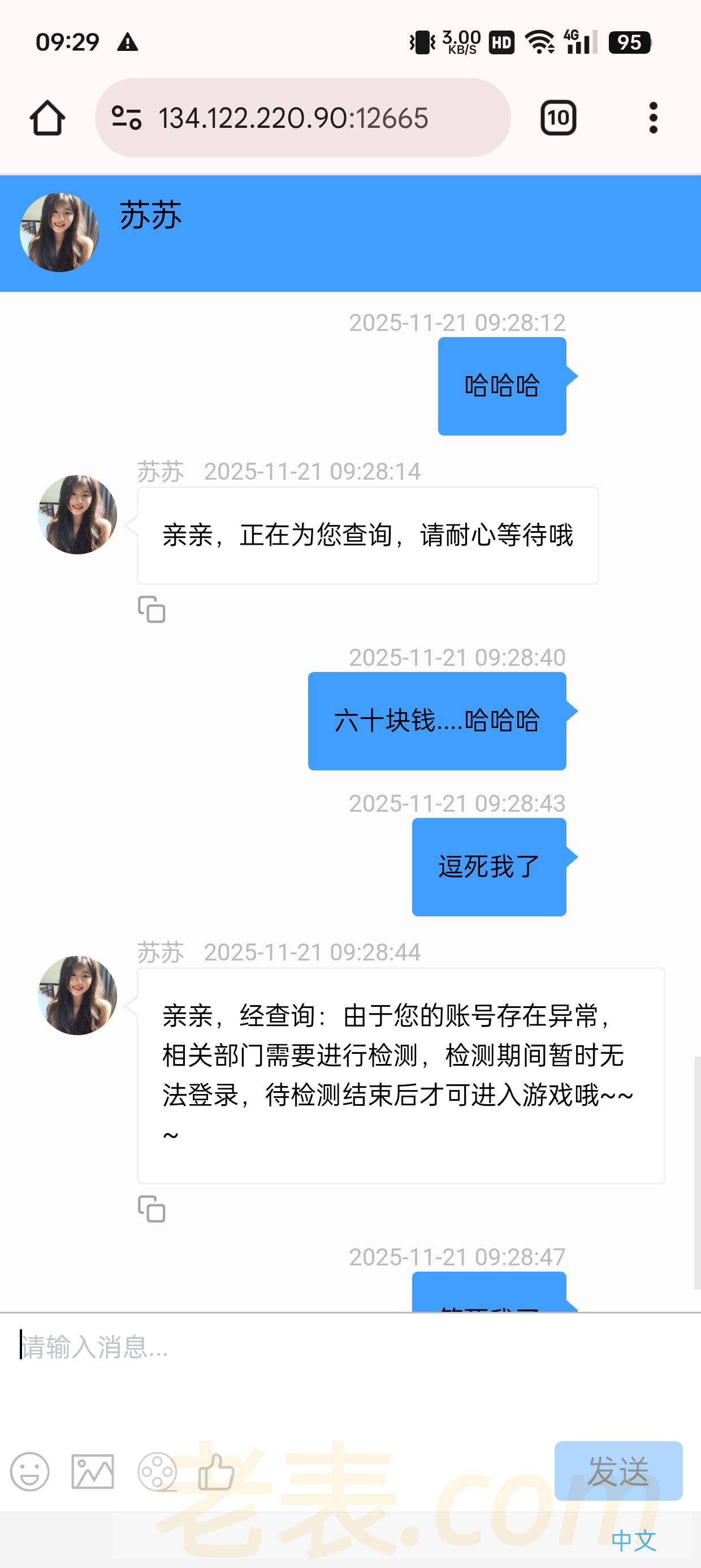 995.com 充值十块钱提60被黑 禁止充值