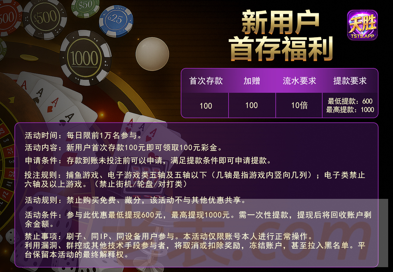 【天胜娱乐✅100+100】送28