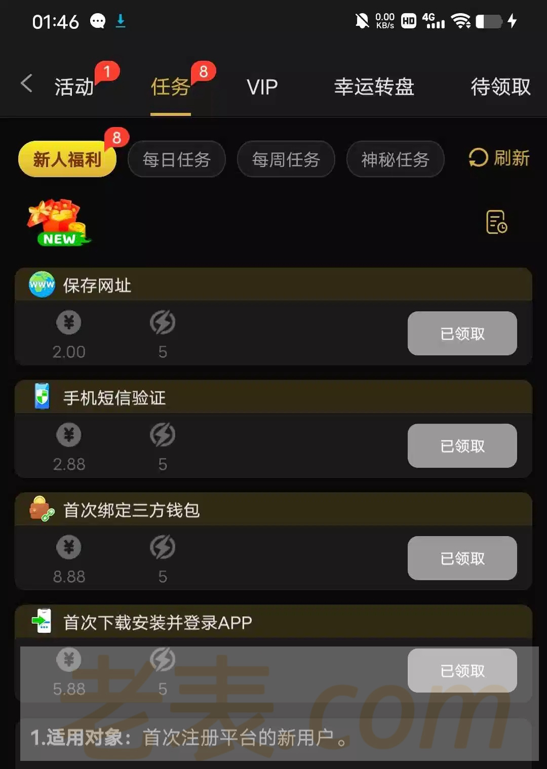 暂时不黑任务彩金要第二天才能领取,自己看