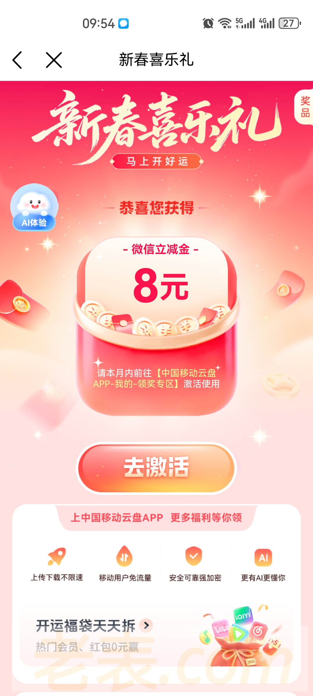 中国移动顶部搜索——【新春红包】领取