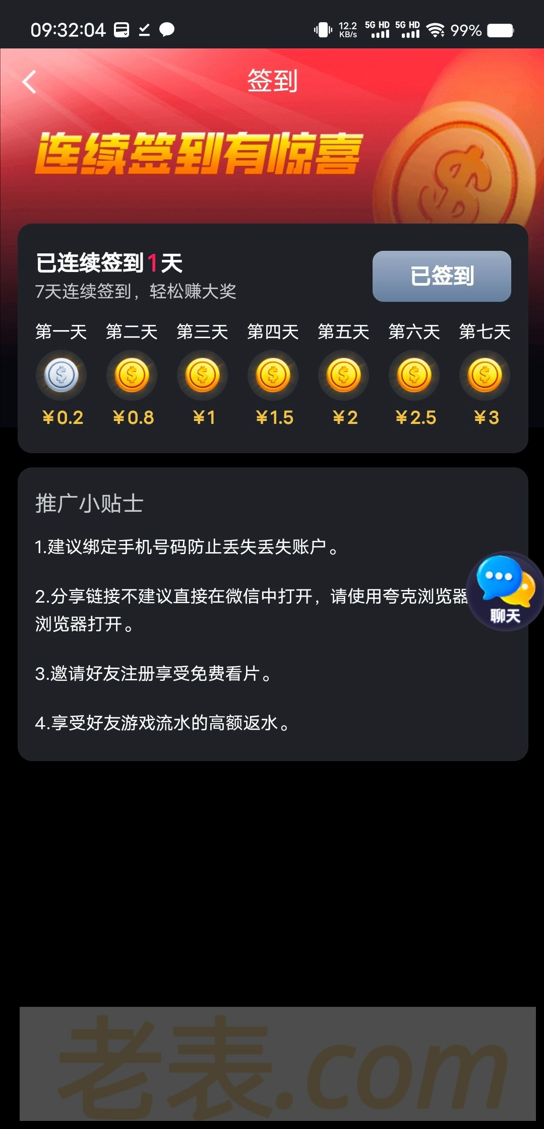 签到一天给多少