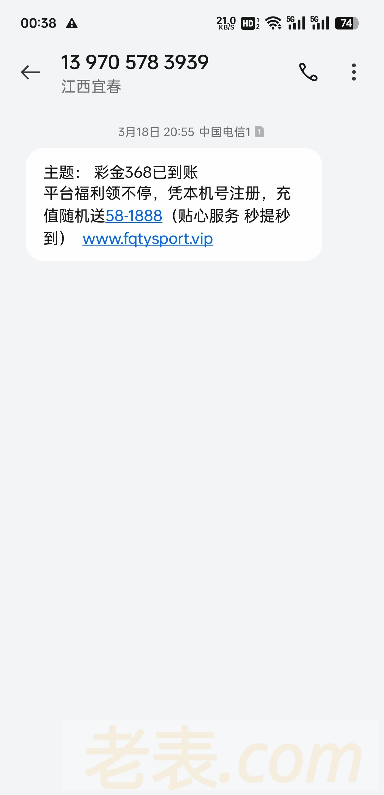 短信内容:平台福利领不停,凭本机号注册,充值随机送58-1888(贴心服务 秒提秒到)